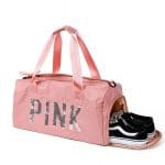 Optez pour ce Sac de Voyage Féminin orné de strass Pink, un must-have pour un look chic. Il vous accompagnera idéalement en tant que bagage à main, pour vos séances de sport ou vos cours de yoga grâce à son espace dédié aux chaussures. Fabriqué dans un textile de premier choix.