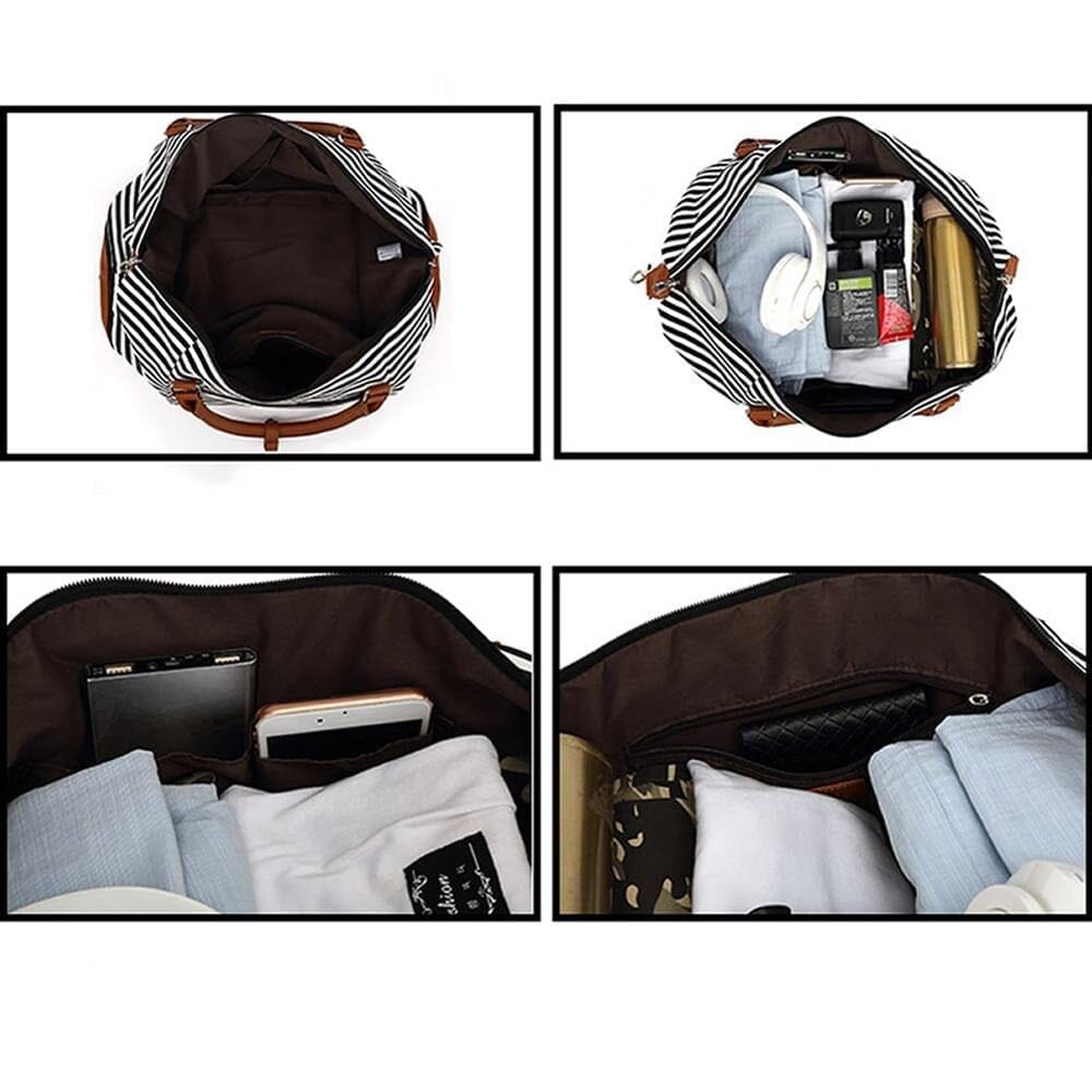 Découvrez le Sac de Voyage pour Femme avec Espace Dédié aux Chaussures et un Design Élégant de Rayures Nautiques, parfait pour séparer vos affaires propres des souliers utilisés ! Un accessoire robuste et distinctif pour vos escapades ou en tant que bagage de cabine.